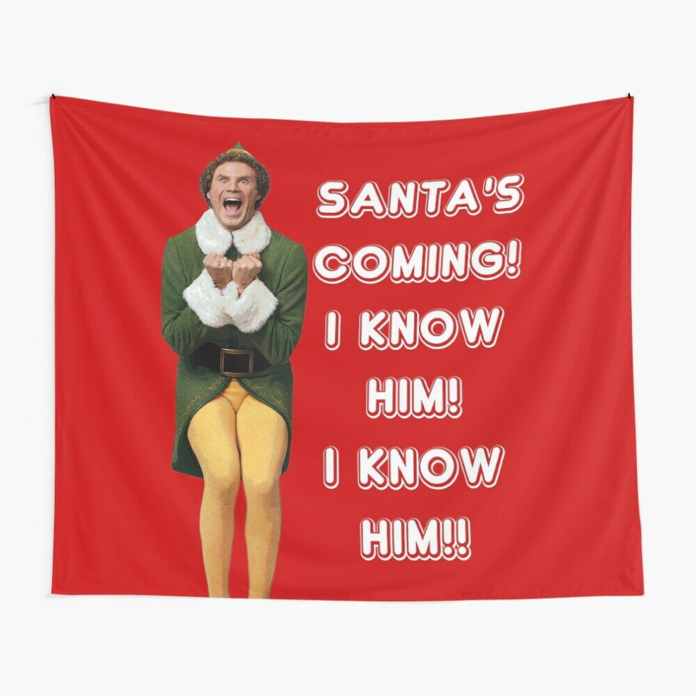 Tapestry 60x50inch SANTA'S COMING! I KNOW HIM! Elf The Movie Will Ferrell Buddy Christmas Wall Hanging Art Décor Living Room