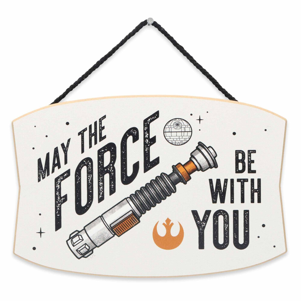 Disney Star Wars May the Force Be With You Lightsaber Hanging Wood Wall Decor - Classic Star Wars Sign for Man Cave or Movie Room