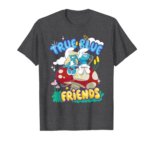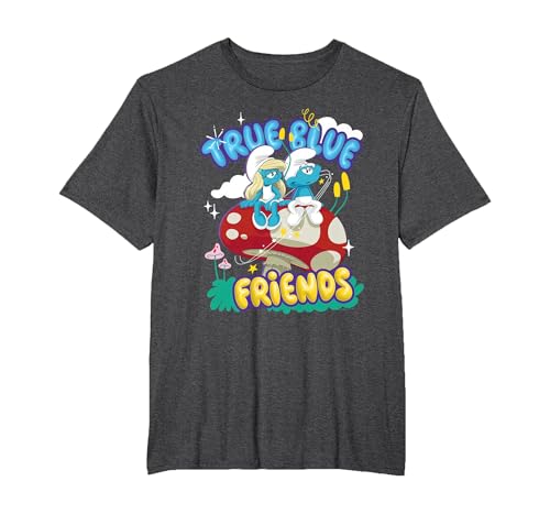 The Smurfs Movie True Blue Friends, Smurfette and No Name T-Shirt, Men, Dark Heather Grey, 6X-Large
