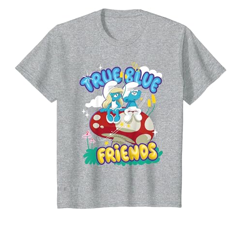 The Smurfs Movie True Blue Friends, Smurfette and No Name T-Shirt, Youth, Heather Grey, Medium