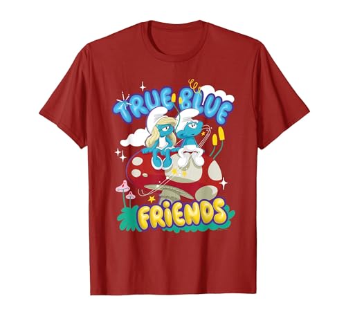 The Smurfs Movie True Blue Friends, Smurfette and No Name T-Shirt, Men, Cranberry Red, Medium