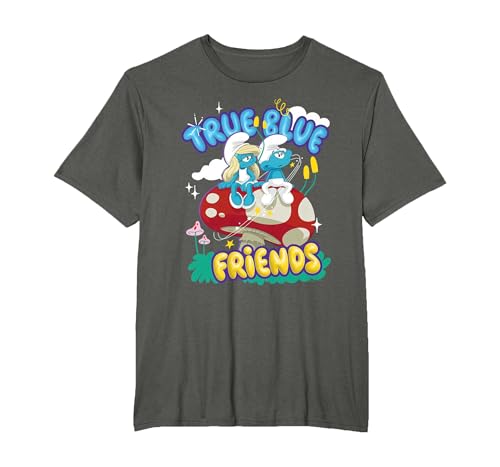 The Smurfs Movie True Blue Friends, Smurfette and No Name T-Shirt, Men, Asphalt Grey, Large