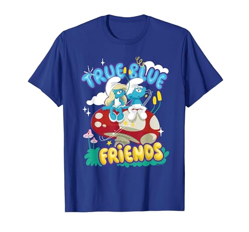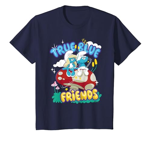 The Smurfs Movie True Blue Friends, Smurfette and No Name T-Shirt, Youth, Navy Blue, Large