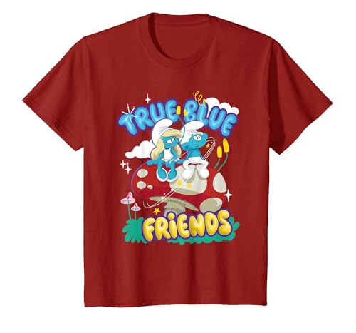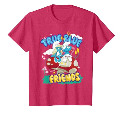 The Smurfs Movie True Blue Friends, Smurfette and No Name T-Shirt, Youth, Cranberry Red, Medium