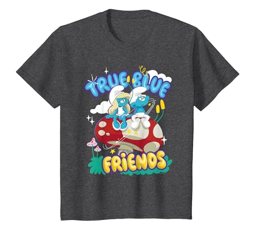 The Smurfs Movie True Blue Friends, Smurfette and No Name T-Shirt, Youth, Dark Heather Grey, 4T