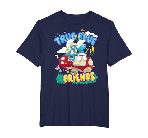 The Smurfs Movie True Blue Friends, Smurfette and No Name T-Shirt, Men, Navy Blue, Medium
