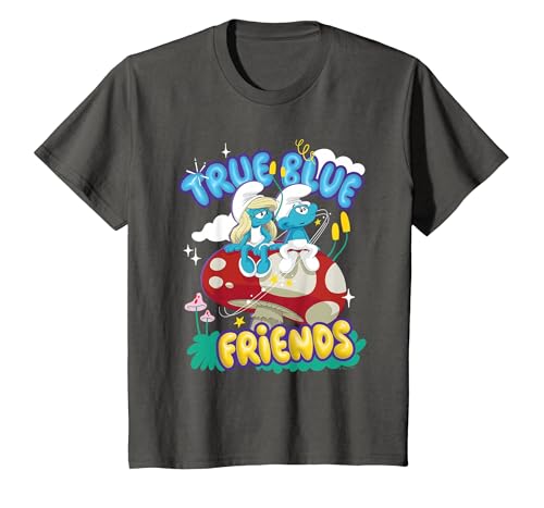 The Smurfs Movie True Blue Friends, Smurfette and No Name T-Shirt, Youth, Asphalt Grey, 4T