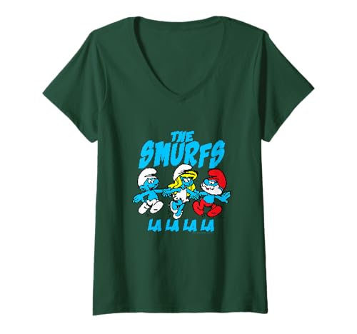 Womens The Smurfs Pixelated Smurfs Retro Cartoon V-Neck T-Shirt