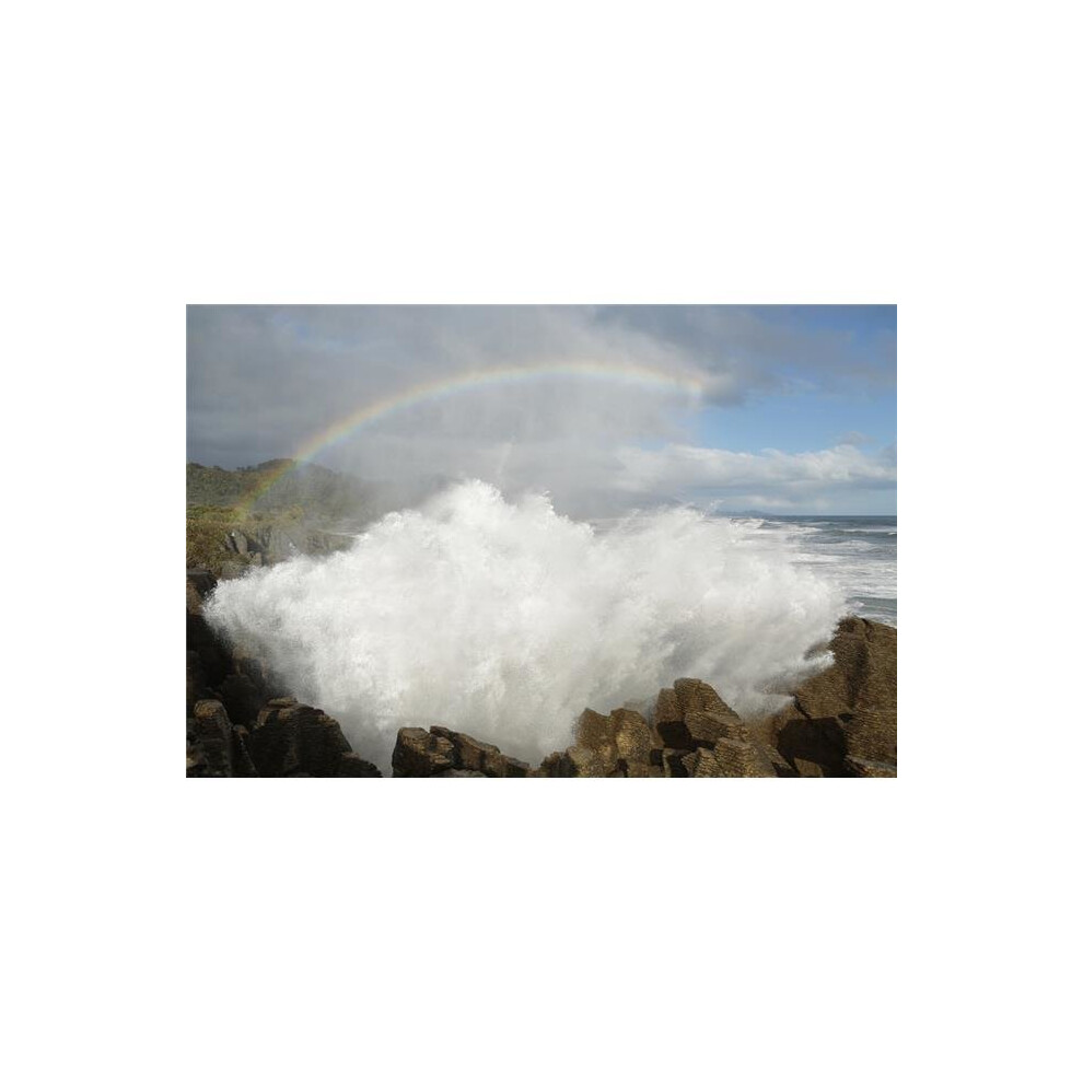 Punakaiki Blowholes with A Rainbow West Coast of The South Island - New Zealand Poster Print - 38 x 24 in. - Large
