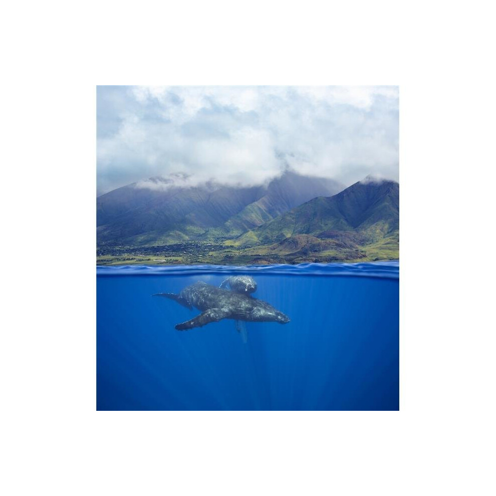 A Split Image of A Pair of Humpback Whales Underwater in Front of The West Maui Mountains Just South of Lahaina Poster Print - 28 x 32 in. - Large