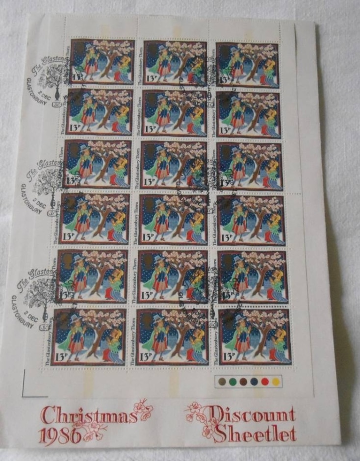 1986 Christmas 13p Sheetlet Of 18 Gb Stamps First Day Cover - The Glastonbury Thorn