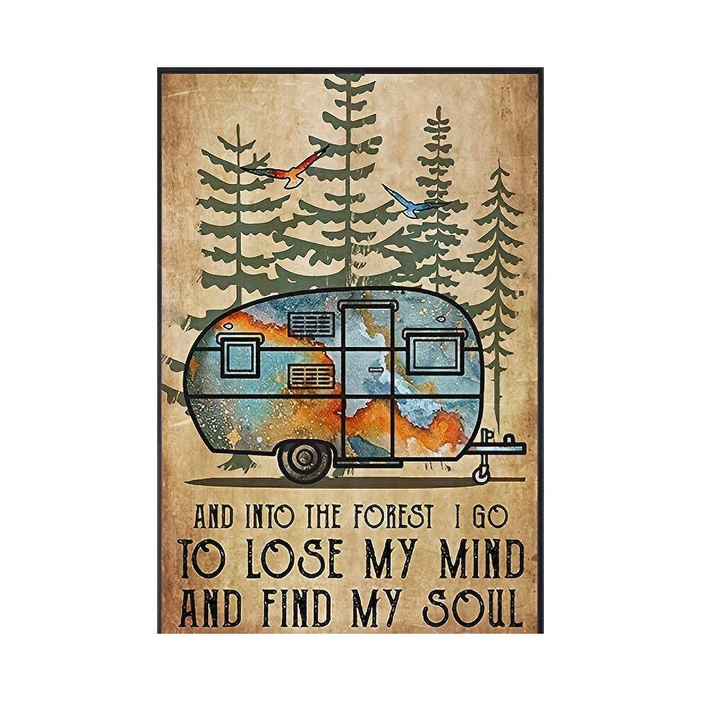 (No.1-20x30CM, only one) Retro Camping Metal Tin Sign Into The Forest I Go To Lose My Mind And Find My Soul Vintage Wall Decor 12x8 Inches