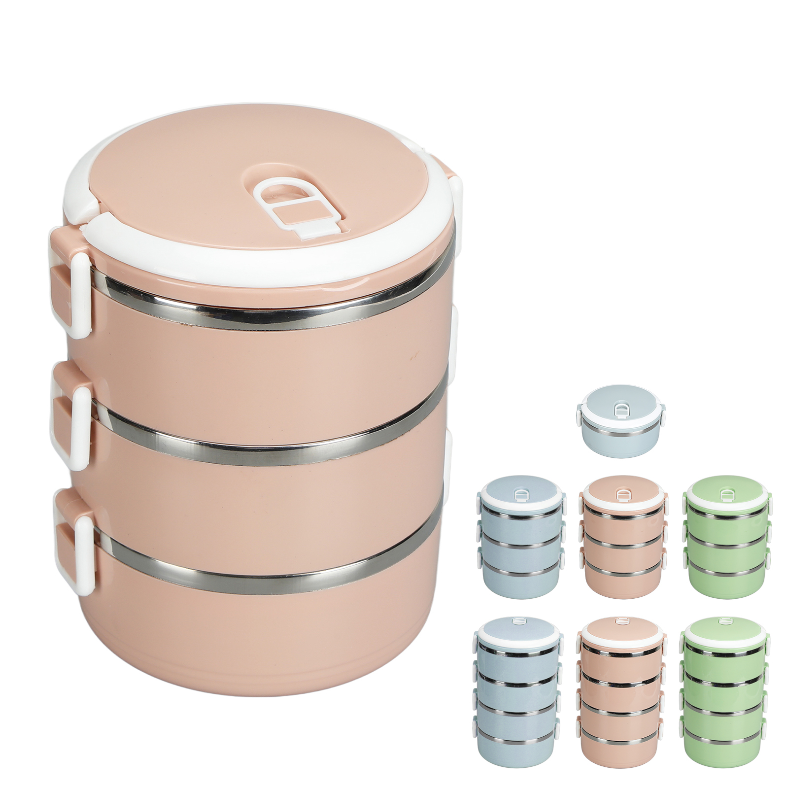Thermal Food Box, Thermal Lunch Box, Stackable Warm Food Insulated Box, Round Lunch Box, Stainless Steel, Sealed Food Containers (Green, One Size)