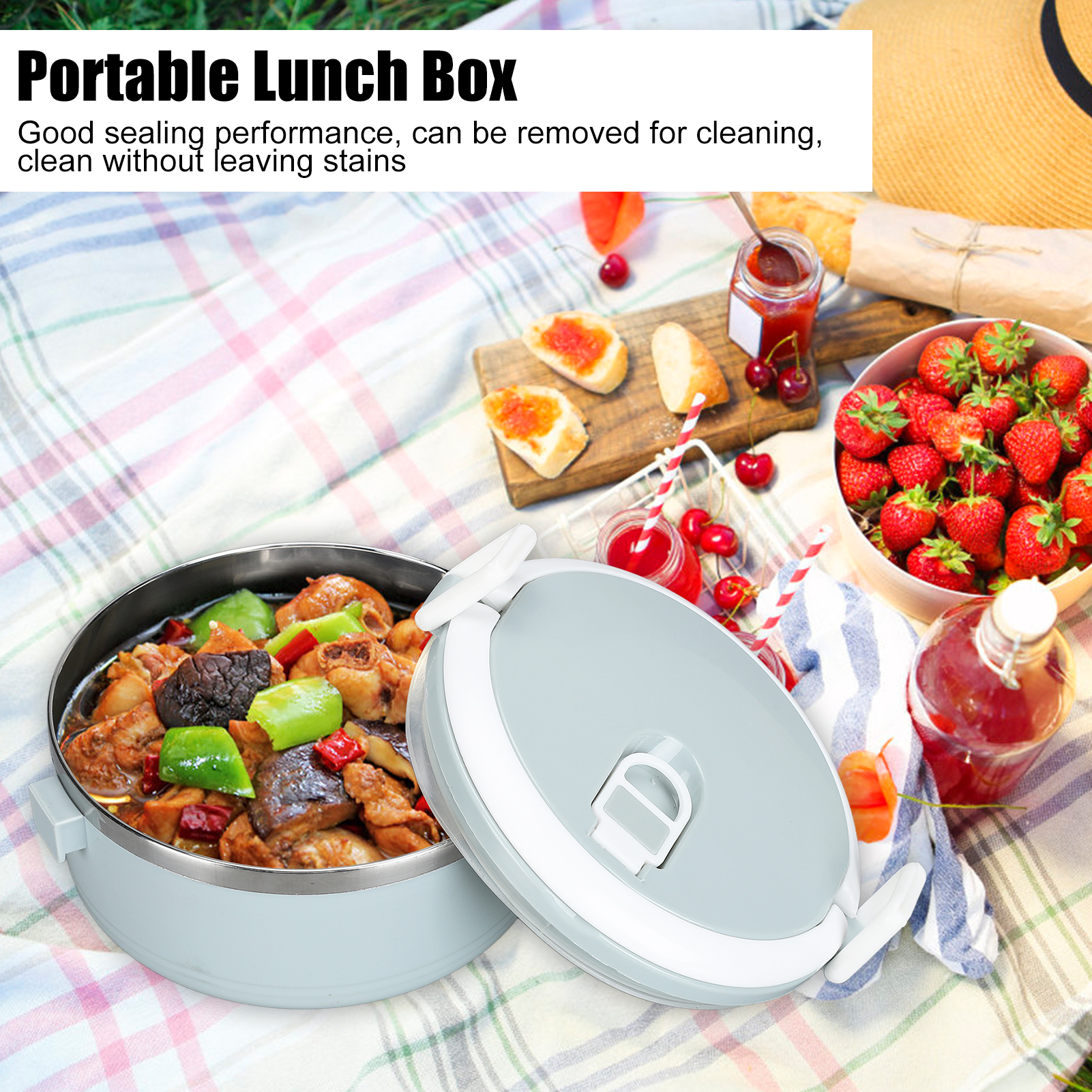 Portable 304 Stainless Steel Lunch Box Thermal Cylinder Lunch Container Fo