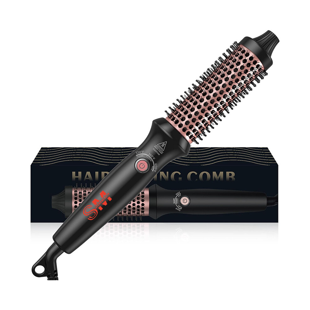 38mm Thermal Brush, Heated Hot Brush, Thermal Round Iron Smooth Shine Volumize Comb, Heated Curling Iron Create Natural Curls, UK Plug Dual Voltage, Rose Black