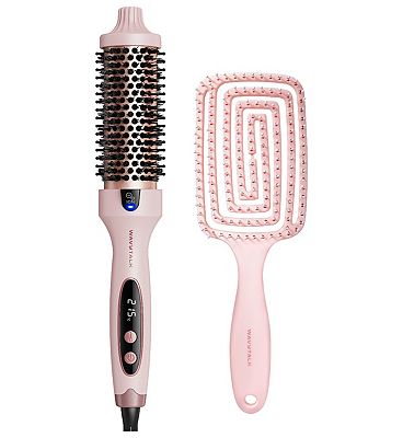 Wavytalk Thermal Brush, Blowout Boost Ionic Round Heated Hot Brush, to Make Hair Smoother & Shinier, Easy to Use, Not for Blow Drying, 38mm Barrel, 5 Temperature Settings, Dual Voltage, UK Plug, Pink
