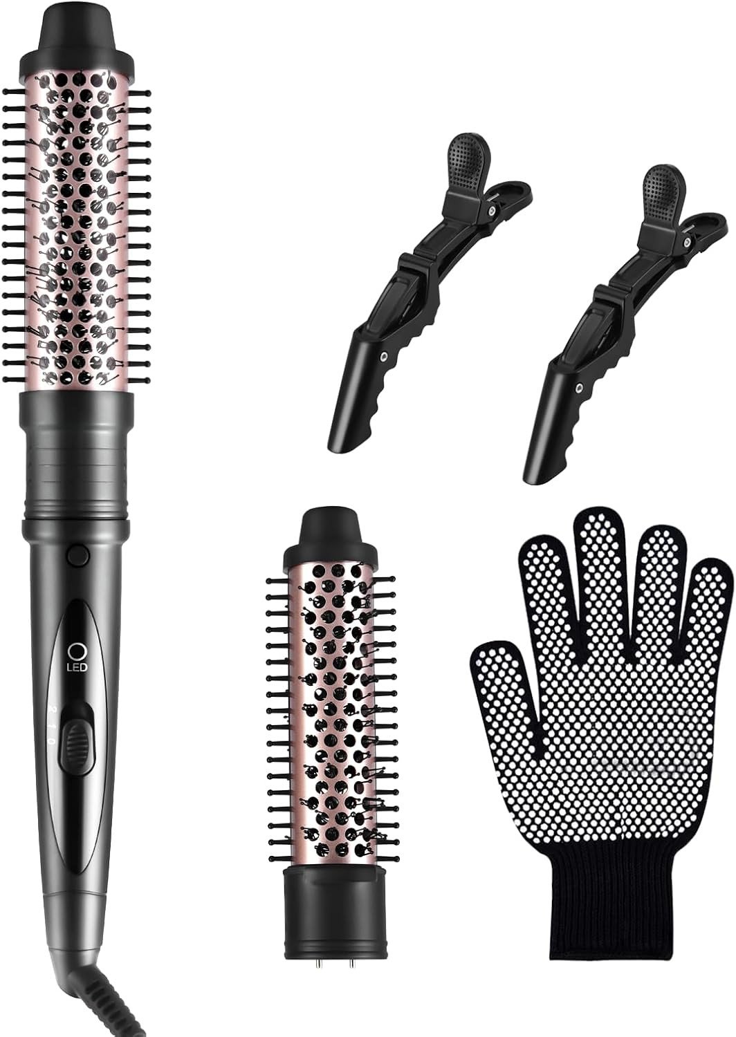 Ckeyin Thermal Hot Brush Set, 2 in 1 Ceramic Tourmaline Ionic Curling Iron, 2 In