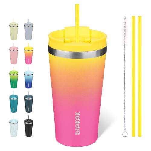 BJPKPK 18oz Stainless Steel Insulated Tumbler with lid and Straw Travel Coffee Thermal Tumblers Cup for Women and Men,Pink Yellow Rose