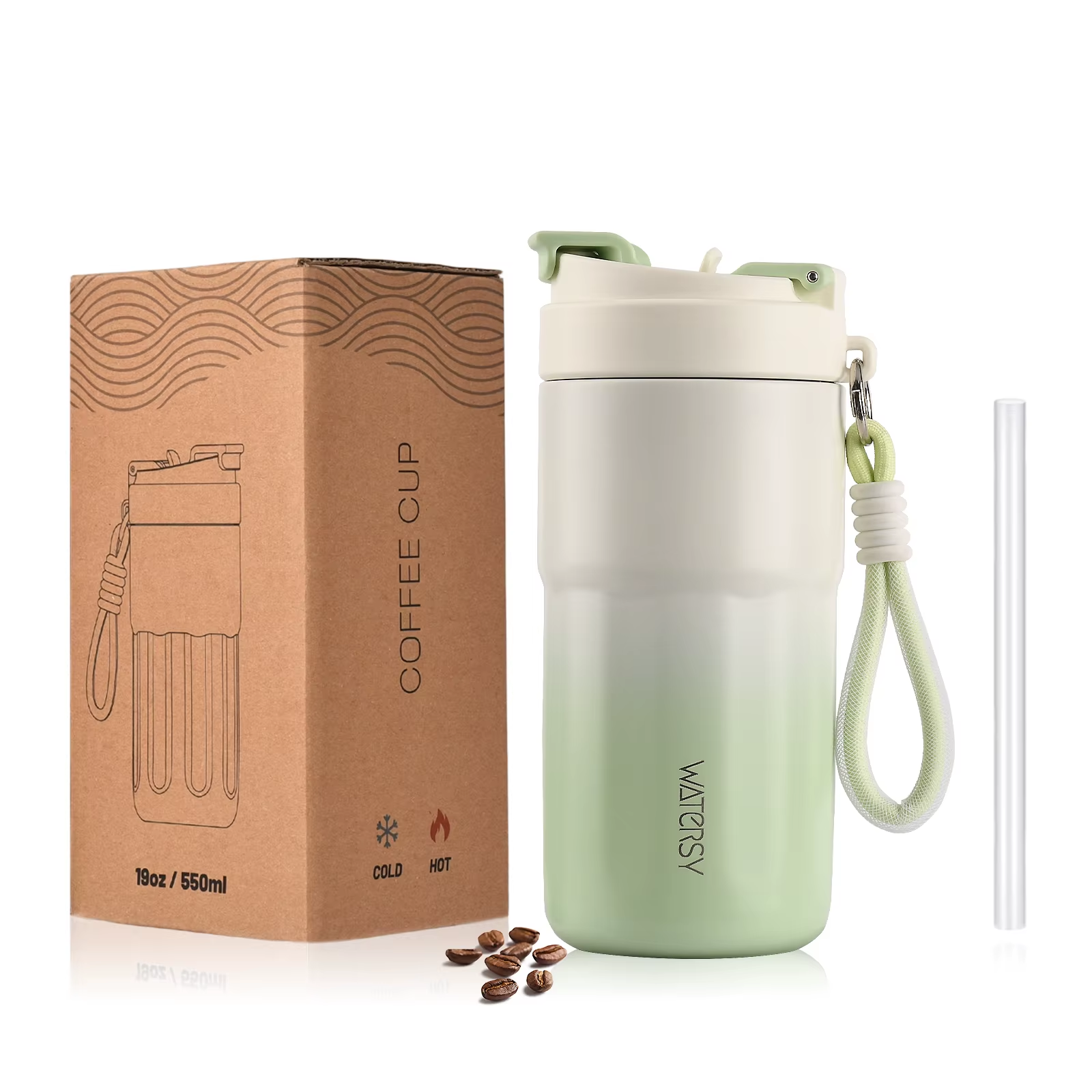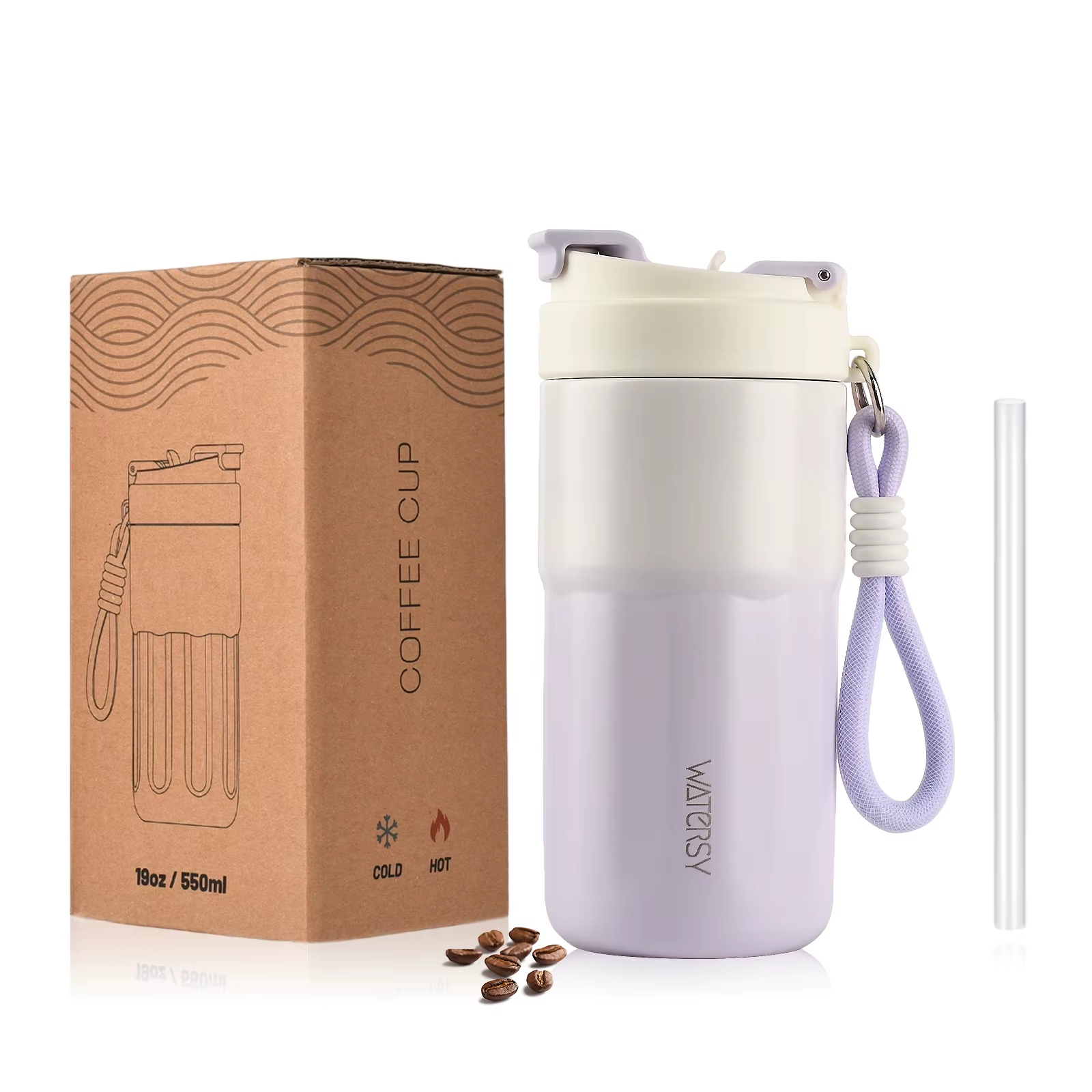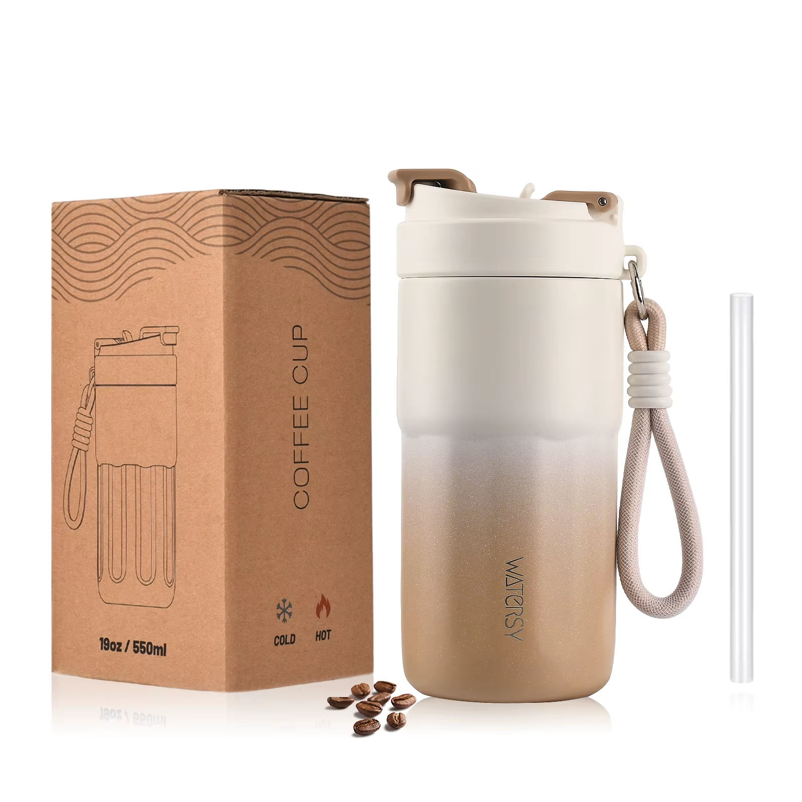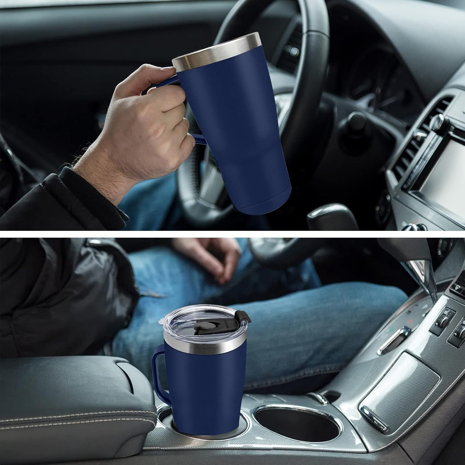 Insulated Travel Mug with Handle Straw & 2 Spill-Proof Lids, Thermal Cup Coffee