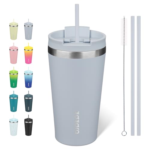 710 ml Insulated Tumbler with Straw Lid - Cold 20hrs & Hot 5hrs Drinks - Double-Walled Stainless Steel Leakproof Travel Mug - Cupholder Friendly Thermal Cup Coffee Flask