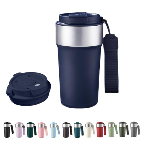HHZalvyre Insulated Travel Mug 510ml, Leakproof Stainless Steel Thermal Coffee Cup with Carry Strap, 3 Drinking Modes, Keeps Hot/Cold for Hours, Car Office Commute Mug, Gift Idea (Tibet)