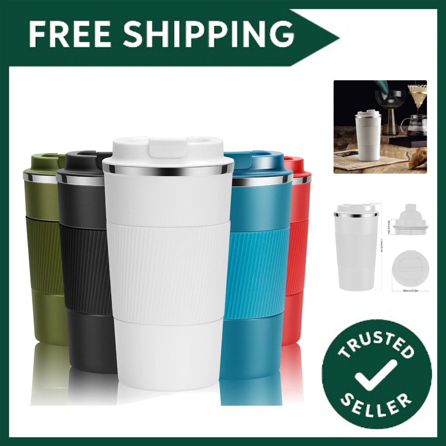 Travel Mug Reusable Coffee Cups Thermal Insulated Vacuum Insulation Stainless...