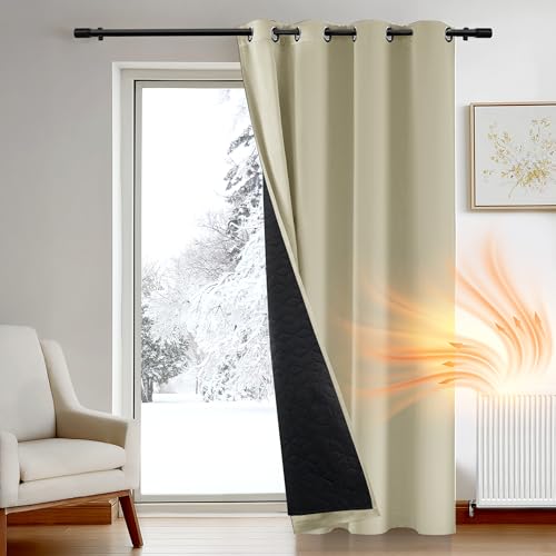 MIULEE Thermal Door Curtain for Winter Heavy Duty 52x96 Inch, Eyelet Blackout Thermal Curtain with Thick Quilted Lining, Double-Layer Cold Resistant Draft Excluder Curtains Winter, 1 Panel, Beige