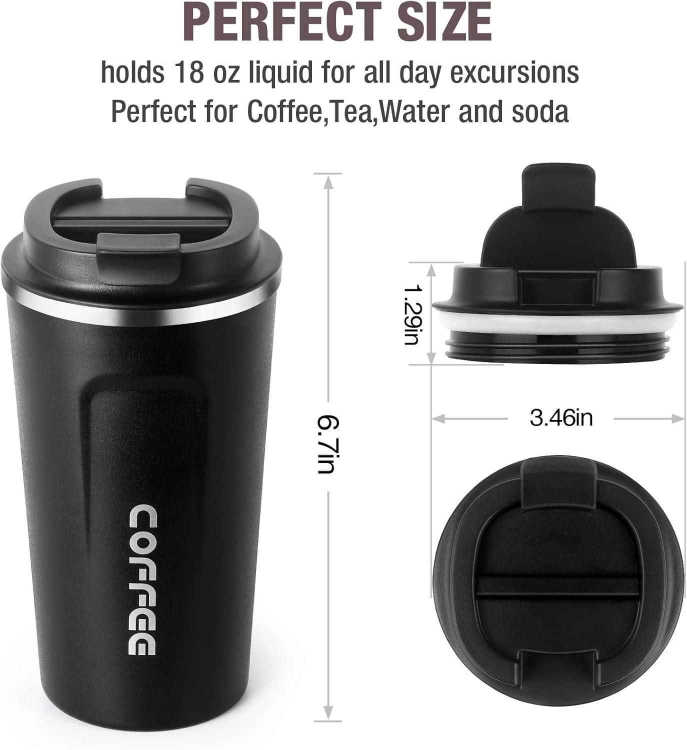 YINJOYI Travel Mug Reusable Coffee Cups 510ml/18oz Thermal Insulated Vacuum Insulation Stainless Steel Bottle for Hot Cold Drinks Black