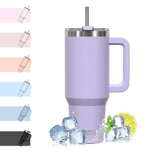 SUNTQ 40oz Tumbler with Handle, Double Wall Vacuum Insulated Water Bottle with Straw and Lid, Stainless Steel Travel Coffee Mug, Reusable Thermal Cup for Beverages, Fit in Cup Holder(Purple)