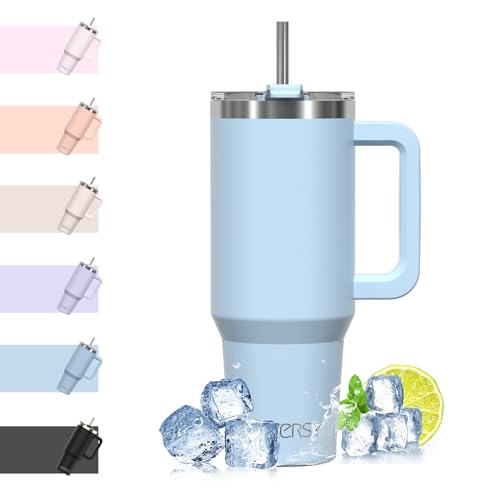 SUNTQ 40oz Tumbler with Handle, Double Wall Vacuum Insulated Water Bottle with Straw and Lid, Stainless Steel Travel Coffee Mug, Reusable Thermal Cup for Beverages, Fit in Cup Holder(Blue)