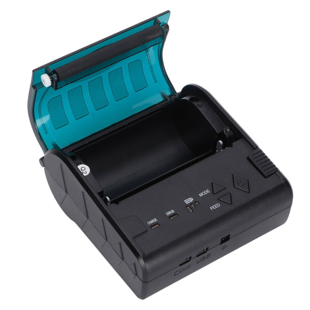 80mm Portable Thermal Label Printer 2000mAh Black UK Plug