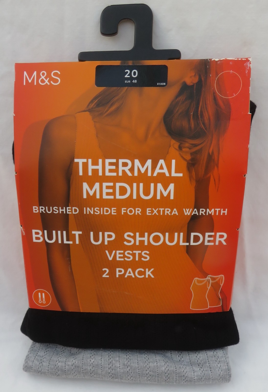 LADIES MARKS AND SPENCER BLACK & GREY THERMAL SLEEVELESS VESTS 2 PACK SIZE 20