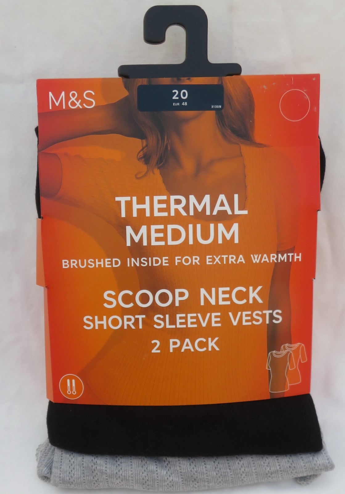LADIES MARKS AND SPENCER BLACK & GREY THERMAL SHORT SLEEVE VESTS 2 PACK SIZE 20