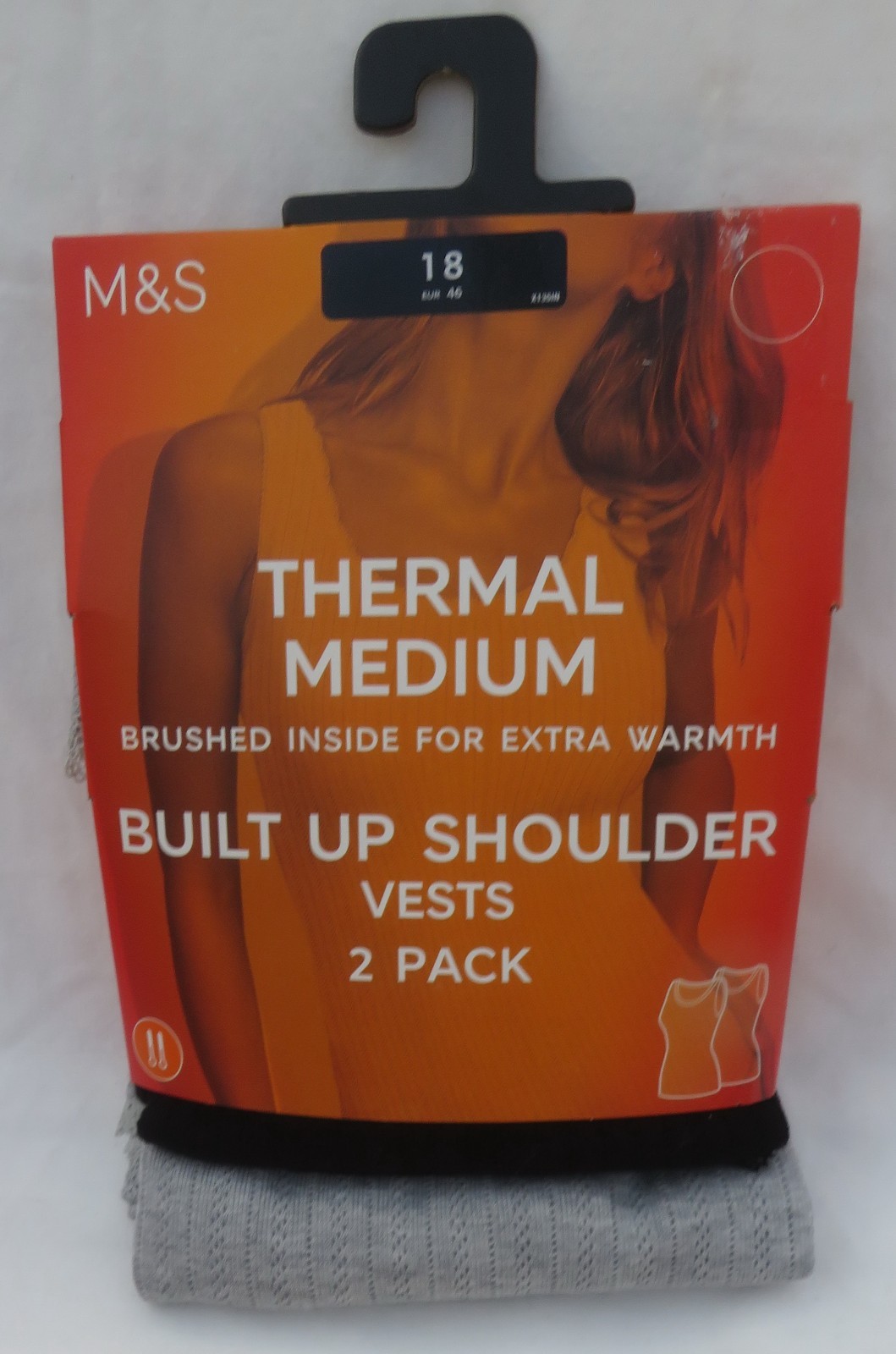 LADIES MARKS AND SPENCER BLACK & GREY THERMAL SLEEVELESS VESTS 2 PACK SIZE 18