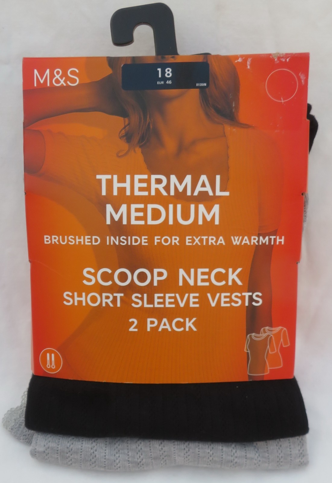 LADIES MARKS AND SPENCER BLACK & GREY THERMAL SHORT SLEEVE VESTS 2 PACK SIZE 18