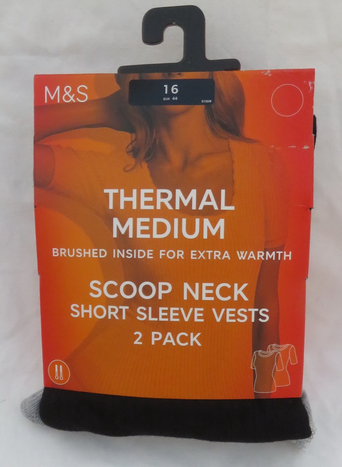 LADIES MARKS AND SPENCER BLACK & GREY THERMAL SHORT SLEEVE VESTS 2 PACK SIZE 16