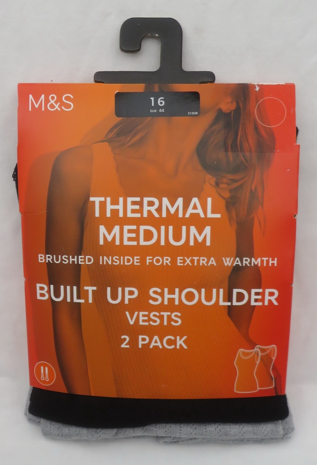 LADIES MARKS AND SPENCER BLACK & GREY THERMAL SLEEVELESS VESTS 2 PACK SIZE 16