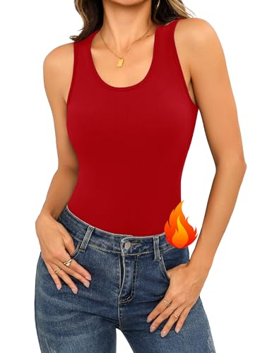 Aottori Womens Thermal Vests Sleeveless Ribbed Base Layer Underwear Ladies Round Neck Camisole Shirts Winter Warm Soft Basic Tank Undershirt Red S
