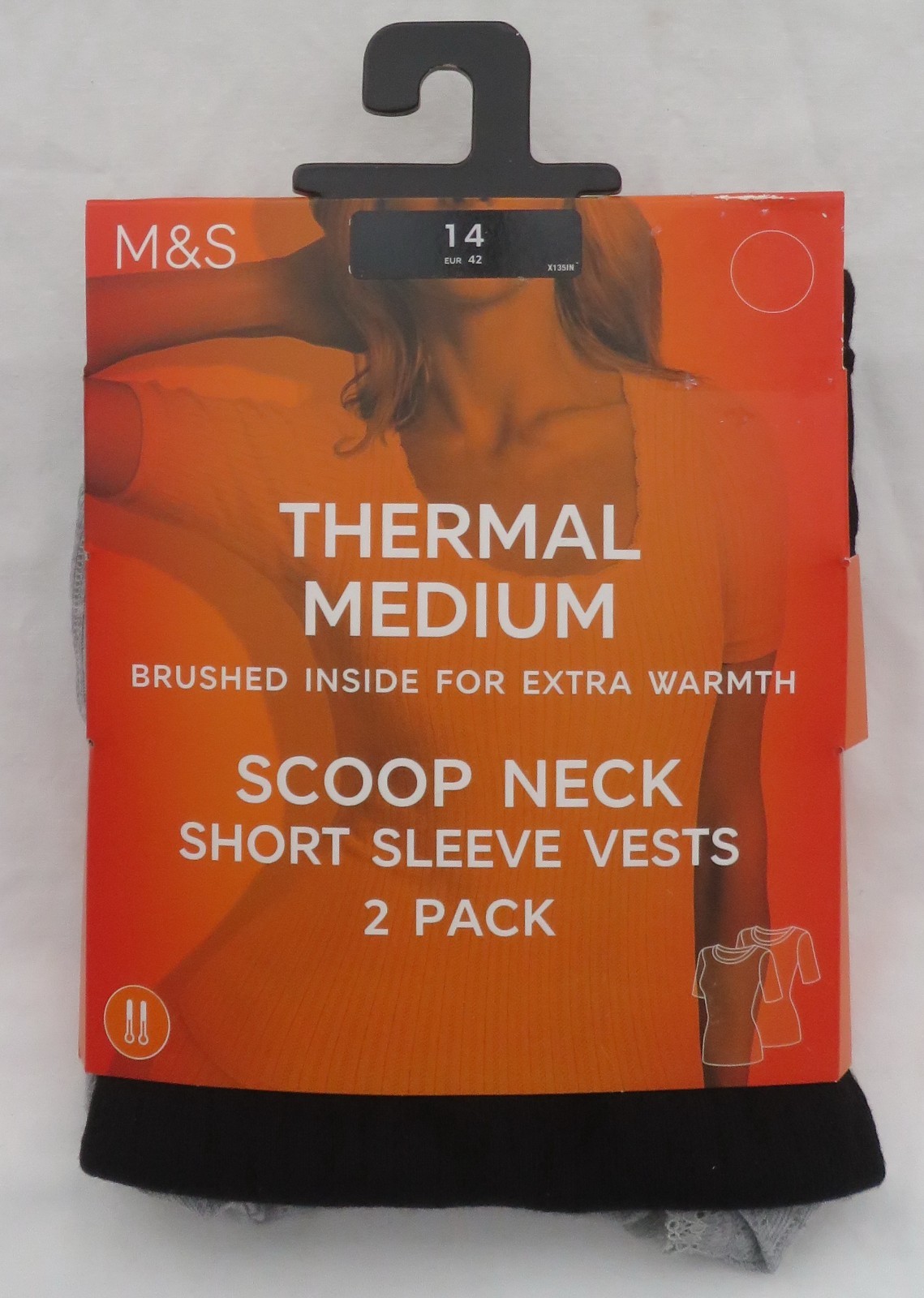 LADIES MARKS AND SPENCER BLACK & GREY THERMAL SHORT SLEEVE VESTS 2 PACK SIZE 14