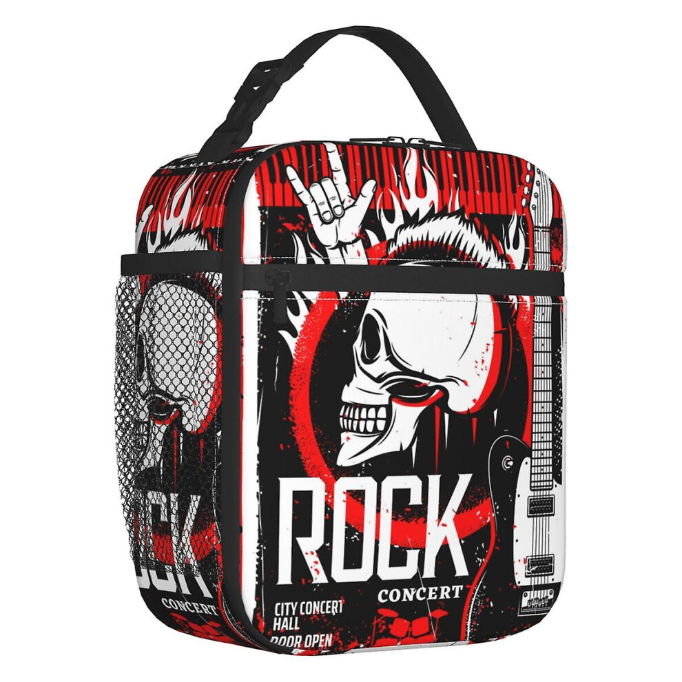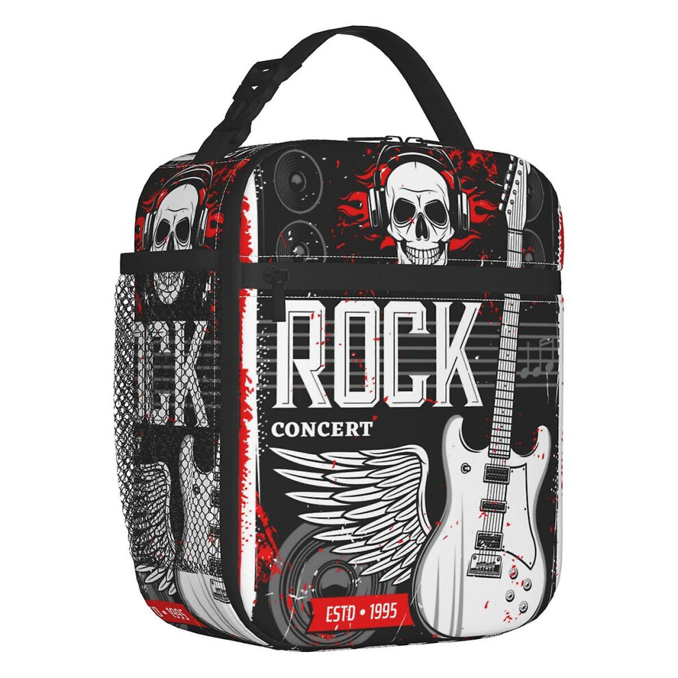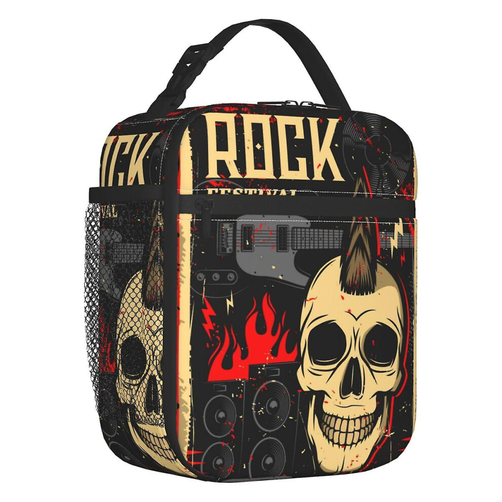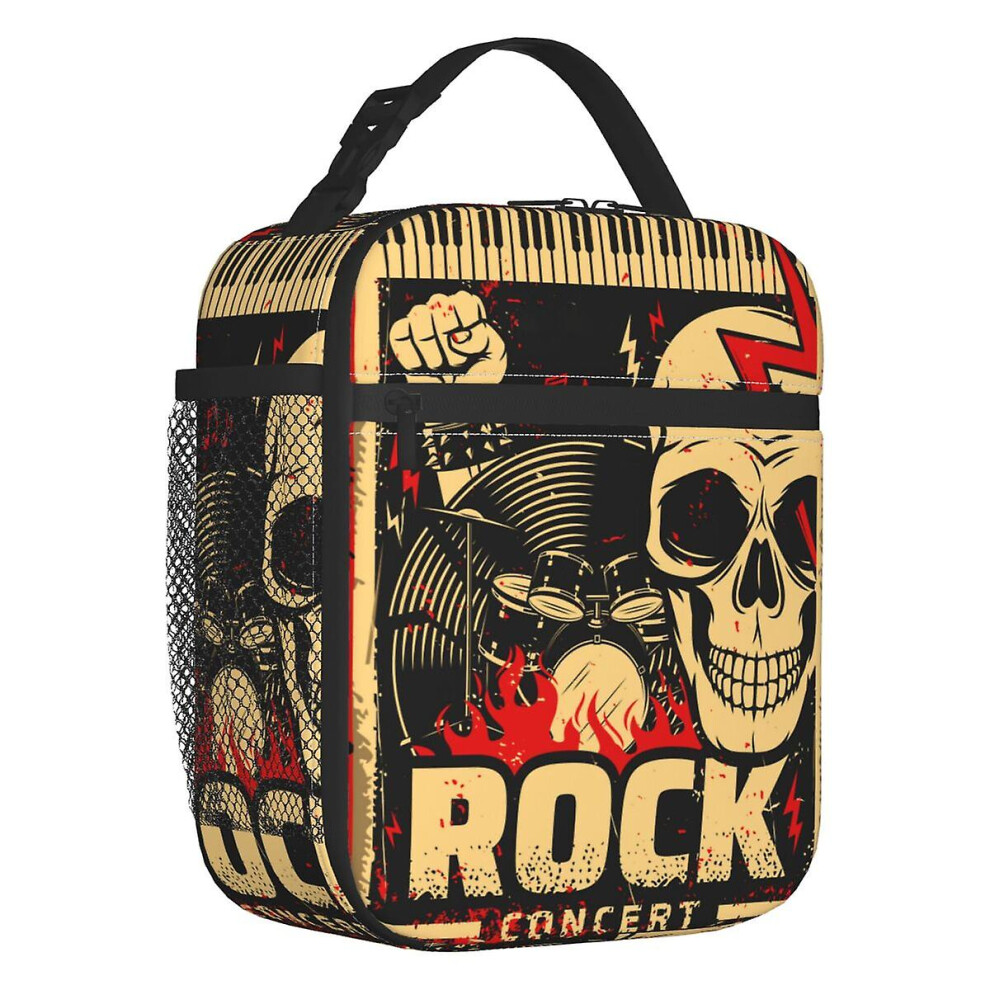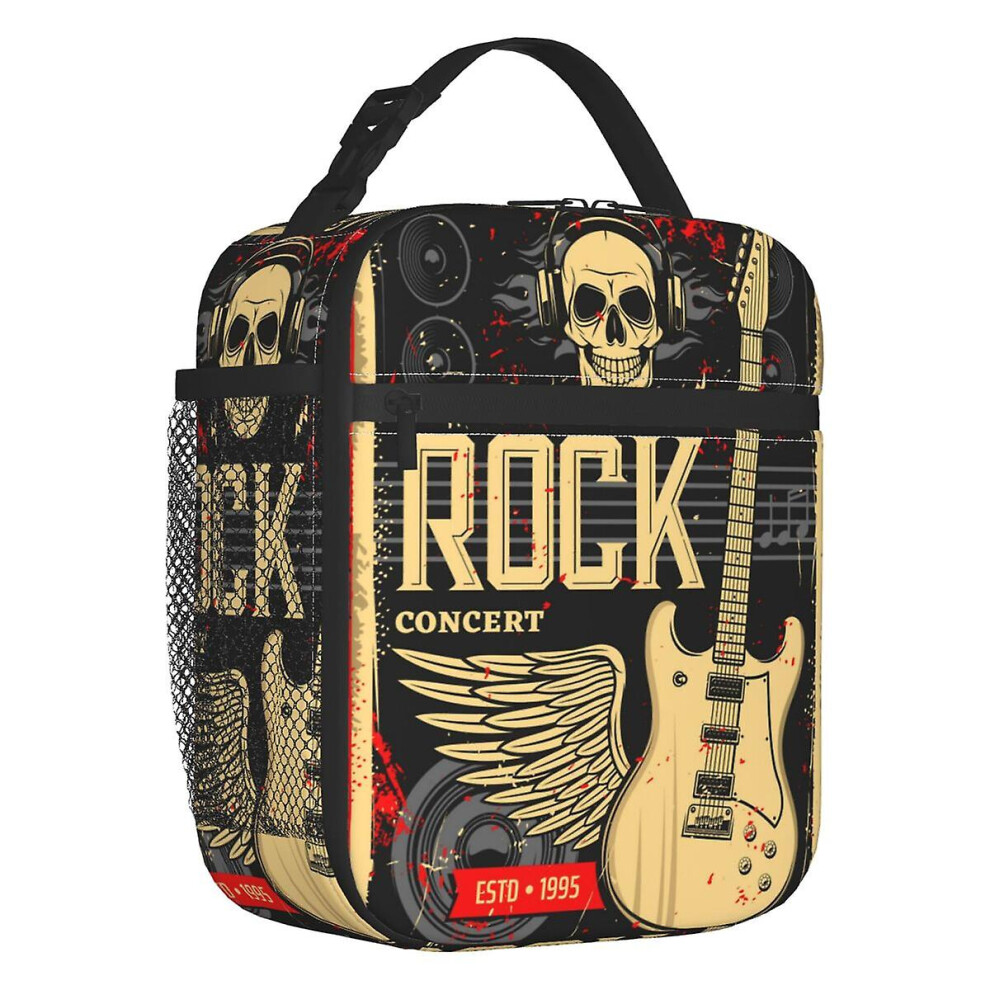 (5) Retro Skull Guitar Rock Festival Insulated Lunch Bag For School Heavy Metal Punk Music Resuable Thermal Cooler Lunch Box Kids