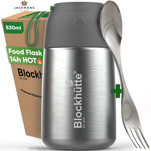 Blockh?tte Thermal Lunch Box for Kids 530ml Stainless Steel | Thermal Food Flask with Spork | Vacuum Insulated Soup Flask for 14h Hot Meals | BPA Free