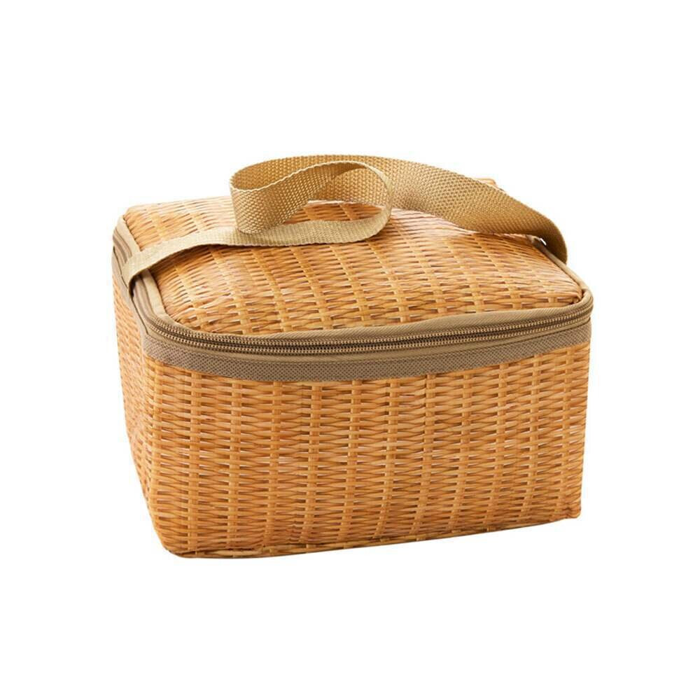 Portable Insulated Thermal Cooler Lunch Box for Kids Canvas Rattan Lunchbox Bag Food Container Bento Box for Picnic