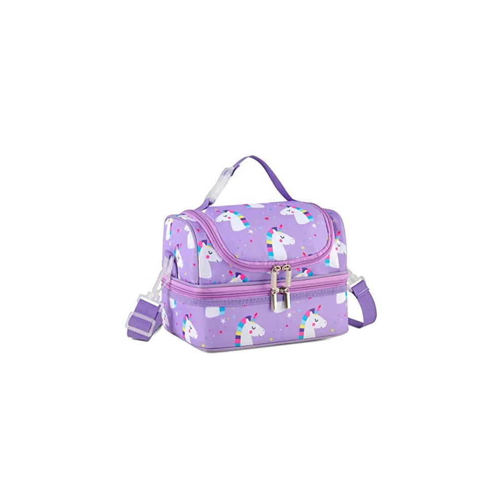 Lunch Bag for Girls, Thermal Insulated Lunch Box Bag for Kids Double Decker Cooler Bags with Large Compartment and Shoulder Strap for