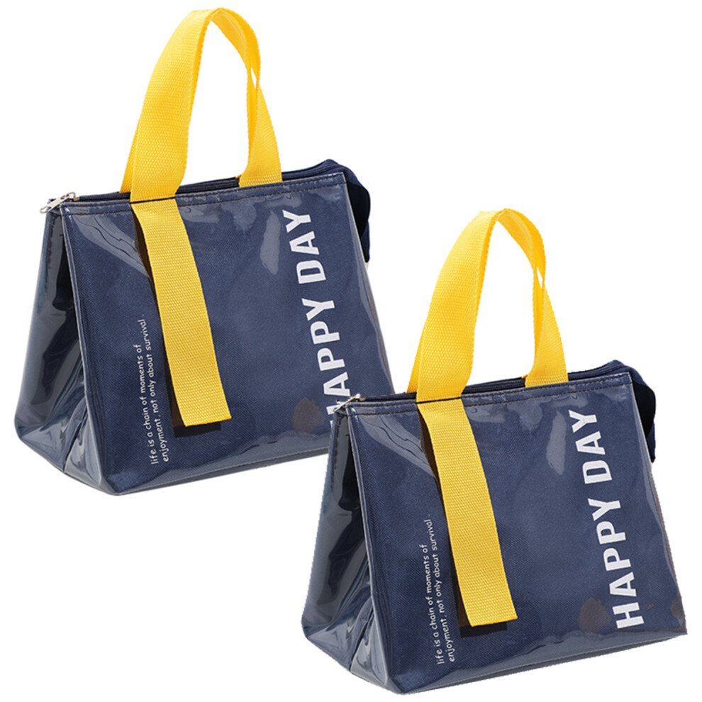2PCS Portable Thermal Lunch Box Bags for Women Kids Food Storage Handbags Travel Picnic Pouch Insulated Cooler Bag (Navy Blue)