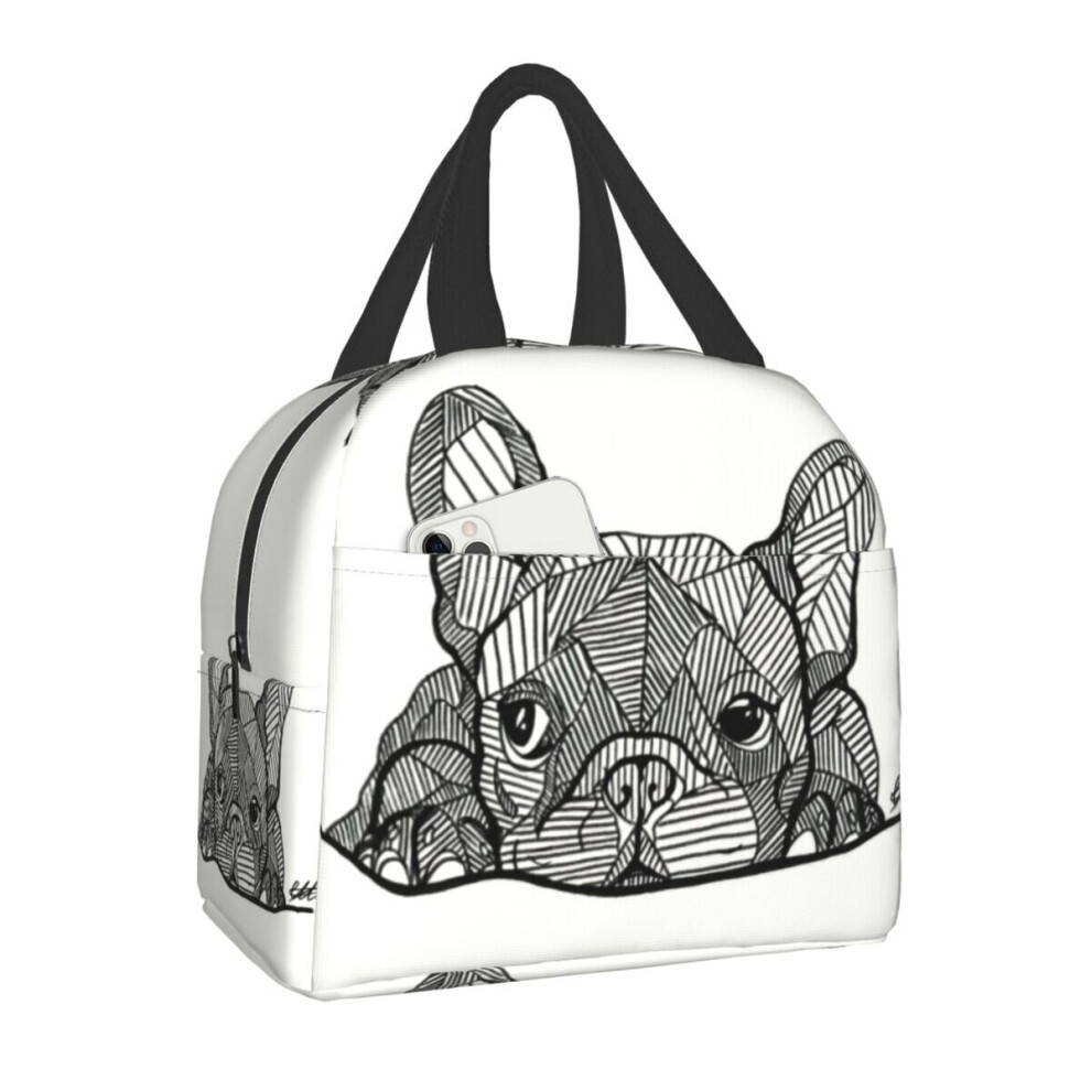 French Bulldog Puppy Facial Insulated Lunch Bag for Work School Frenchie Resuable Thermal Cooler Lunch Box Women Kids