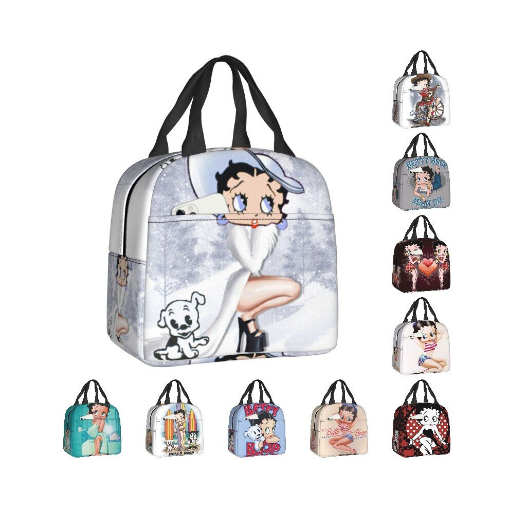 Cartoon Graphic Bettyboop Insulated Lunch Bags for Work School Animation Waterproof Thermal Cooler Lunch Box Women Kids