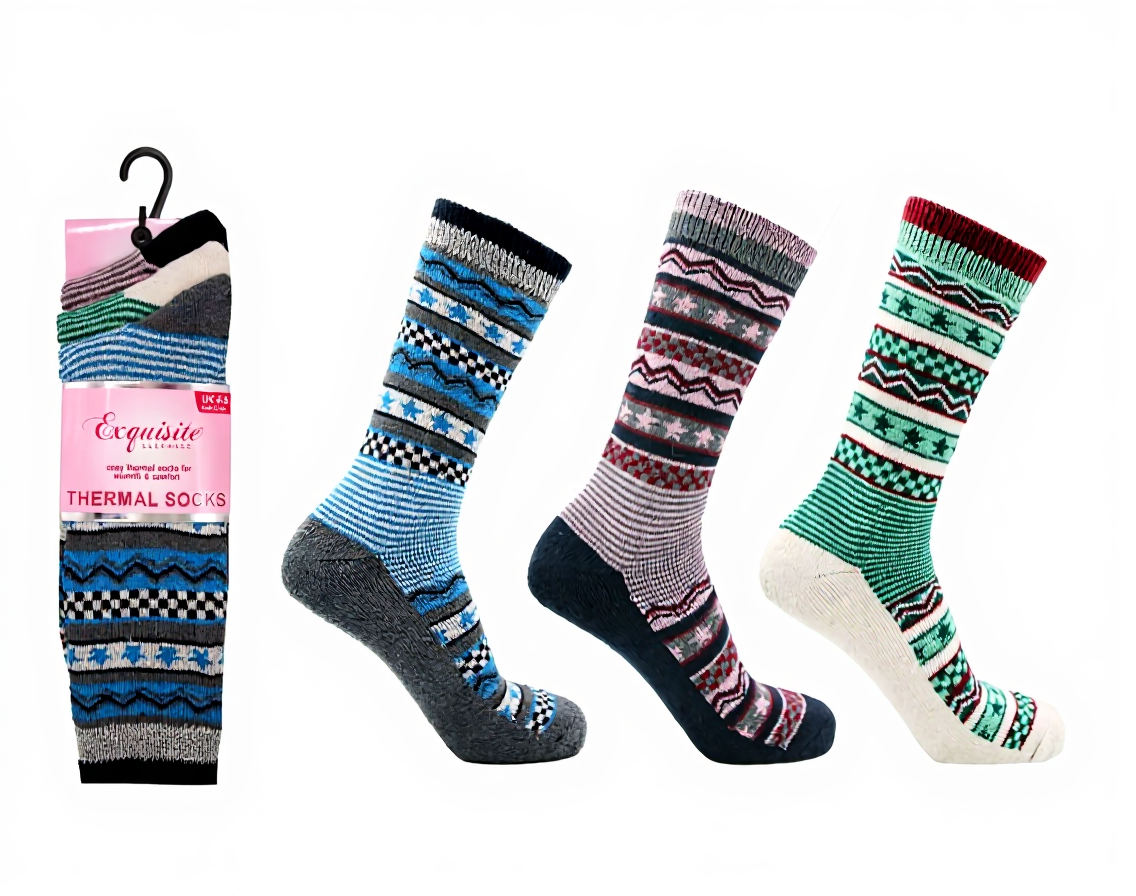 12 Pairs Ladies Thermal Nordic Star Socks Assorted UK 4-8