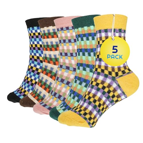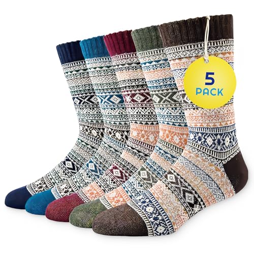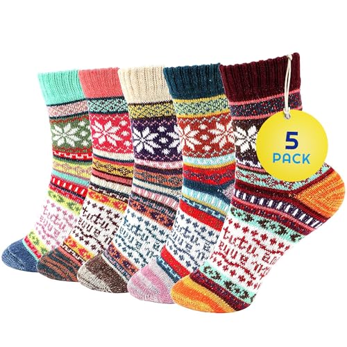 Sunny Socks 5 Pairs Ladies Thermal Socks in Bright - Cozy, Warm & Breathable Winter Socks for Women - Soft Cotton & Colorful Wool Nordic Design - Fluffy Stylish Bed Socks - Fits UK Size 3-7