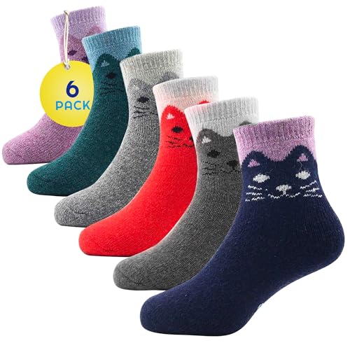 Sunny Socks 6 Pairs Kids’ Thermal Cat Socks - Soft, Warm & Breathable for Boys & Girls, Cute Fun Cat Design, Ideal for School, Outdoor Adventures, Everyday Wear