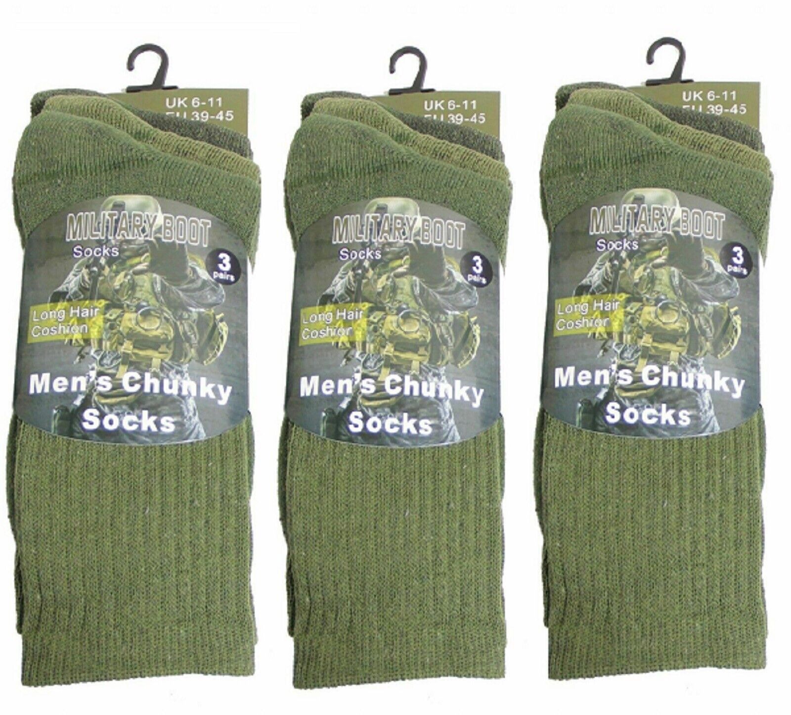 3 Pairs Men's Army Socks Thermal Long Hair coshion Military Boot Socks Size 6-11